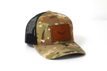 Ikonická Trucker kšiltovka Yupoong s koženým logem Nemesis. V zadní části naleznete malé signature logo našich parťáků, bývalých vojáků a veteránů ze společnosti Black Flags.